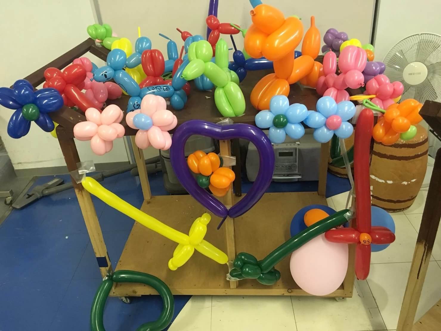 当日台車に風船を飾るとのことで、バルーンアートのイメージを決め、飾り付けをしました✨