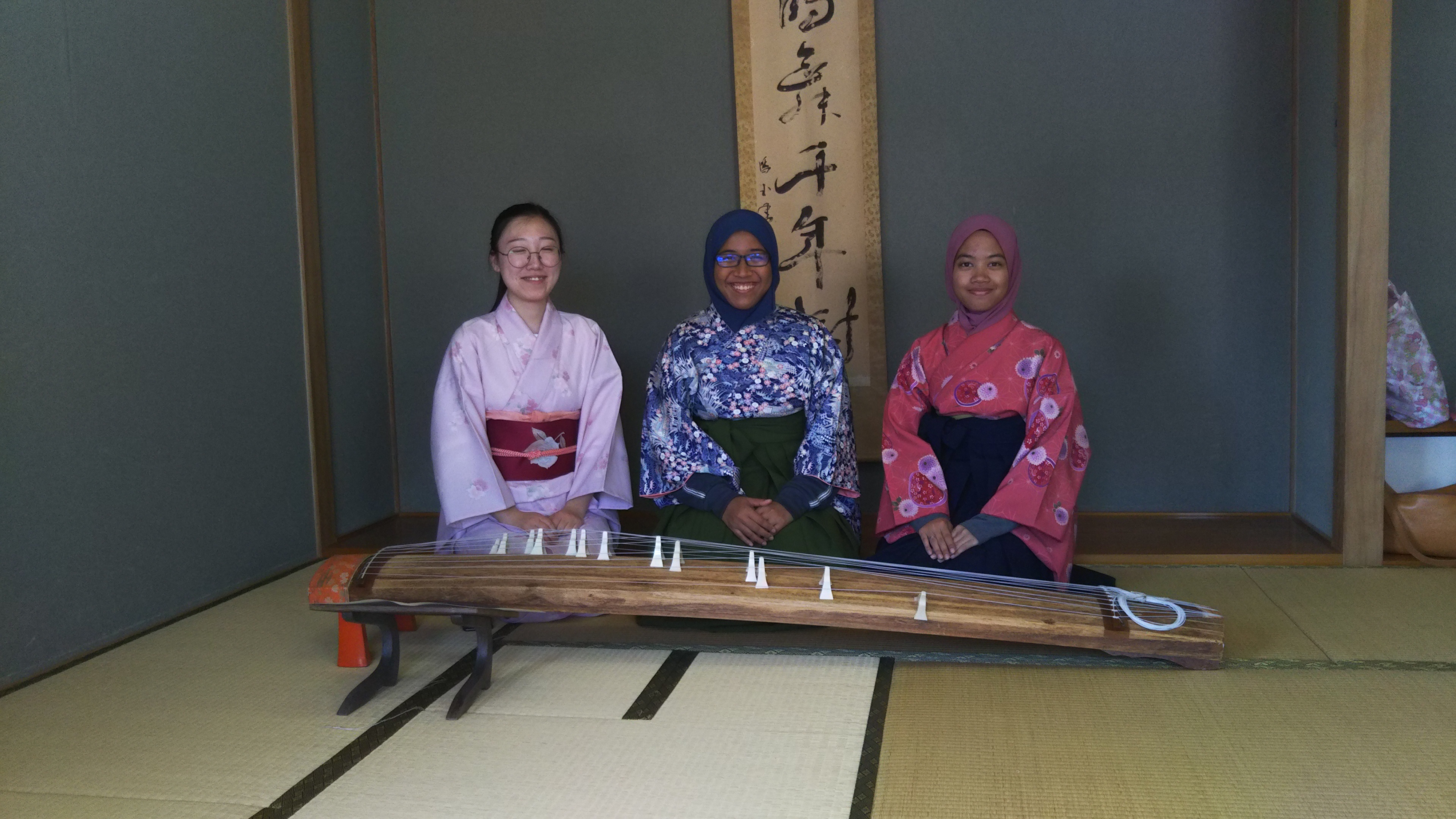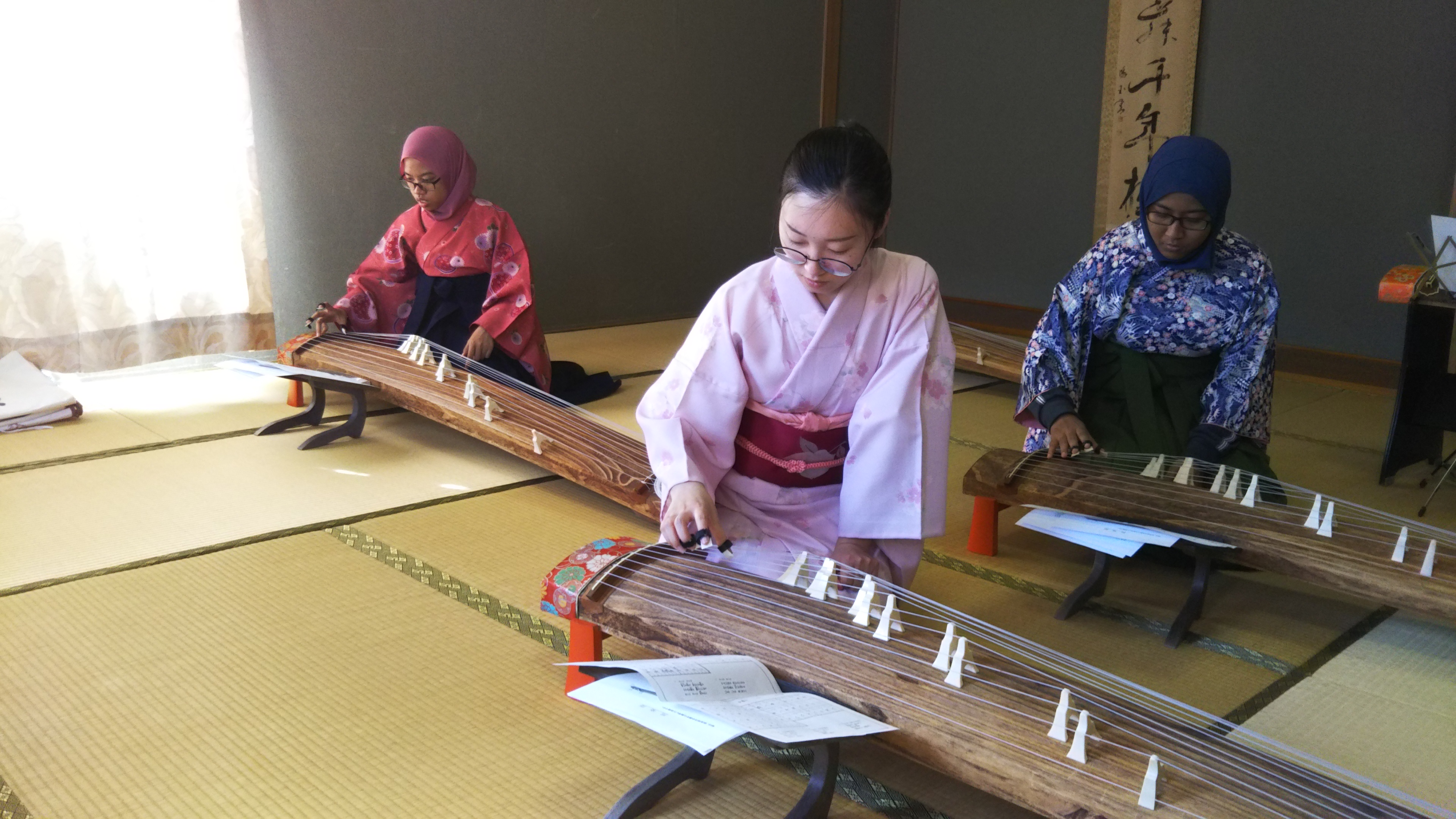 マラ工科大学の留学生と中国からの長期留学生がお琴の体験に来ました。