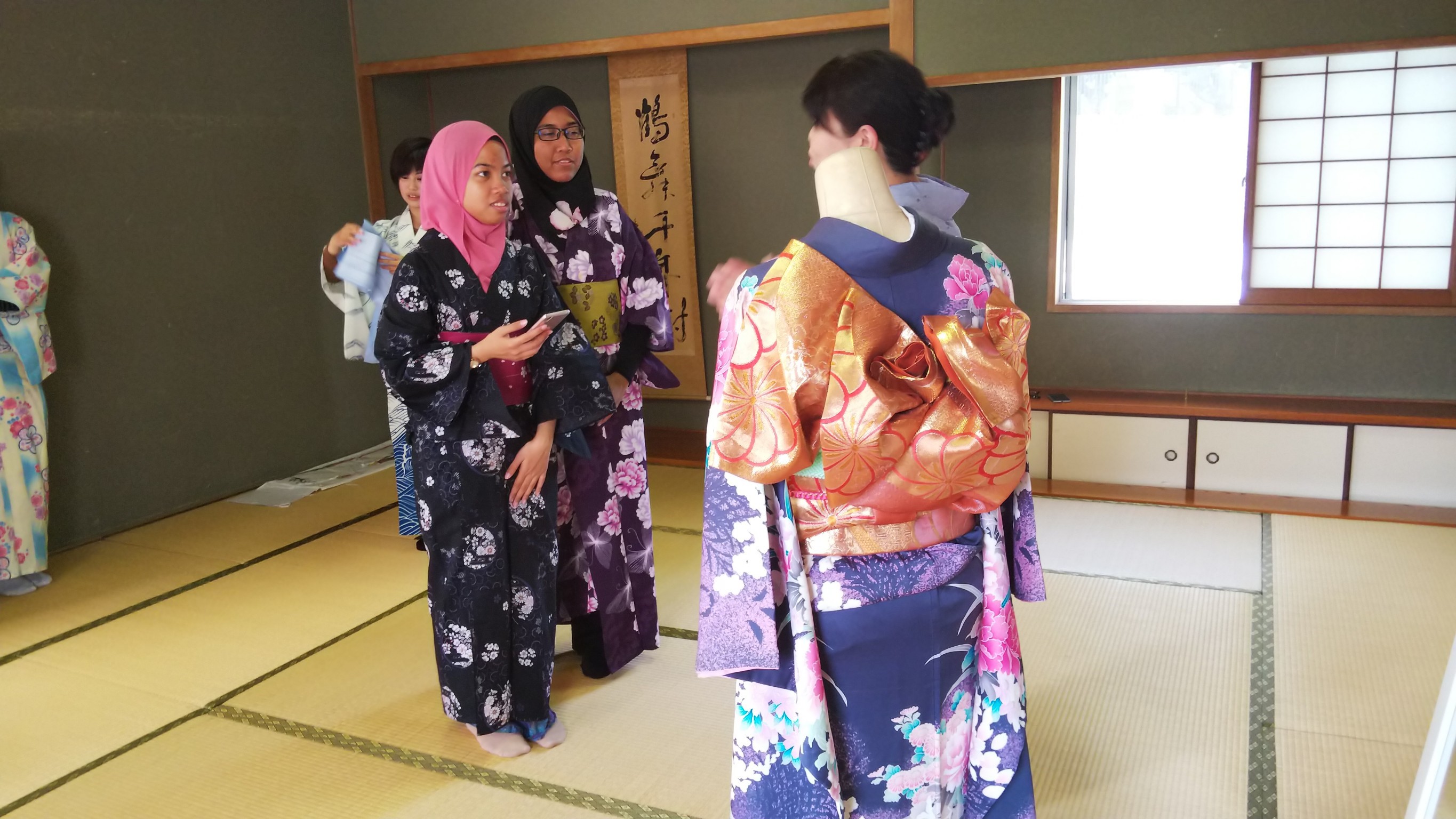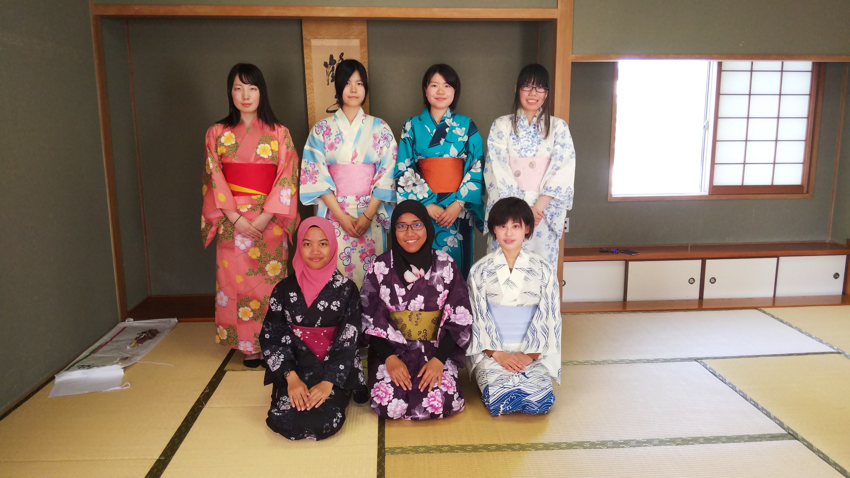 留学生のお二人には2年生が浴衣の着付けを致しました。(実は前日に法学部さんとコラボさせて頂いて着物の着付けも行っていたりしていたのですよ( ̄▽ ̄))
