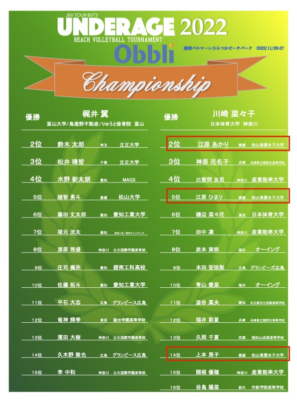 11/25.26神奈川県平塚市でジャパンツアーu22チャンピオンシップマッチが