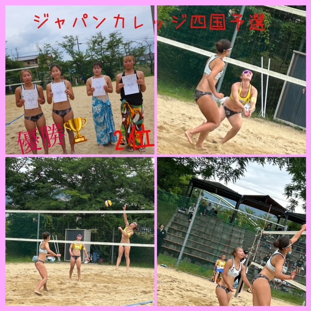 6/10(土)石手川緑地公園ビーチバレーコートにおいてビーチバレージャパンカレッジ四国予選が開催されました。本学から参加の2ペアを含む5ペアが参加しました。リンク戦2試合後、上位2ペアで決勝戦というスケジュール。東雲A、東雲Bは順調に決勝戦まで進出し、昨年の負けを勝利でリベンジしたのは、東雲B篠藤愛音・江原ひまりペアでした。優勝🏆おめでとう&四国代表決定です。東雲A上本晃子・江原あかりペアもフルセットの接戦での敗戦です。u23では2ペア参加となりますので、頑張ります😊💪📣