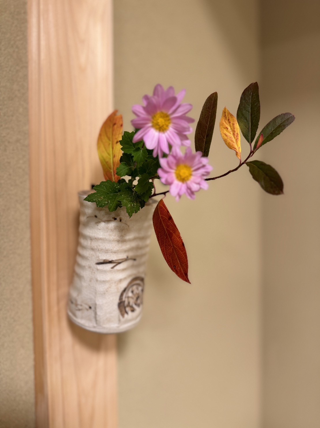 本日のお花は、小菊と鮮やかな紅葉のコバノズイナです。