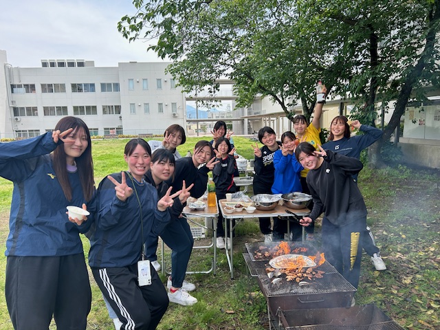新入生歓迎BBQ🍖を5/2に行いました。部員12名(インドア・ビーチ)とコーチ、OBなど総勢18名でお肉10kg.ご飯23合、イカやアジなど食べ尽くしました😊