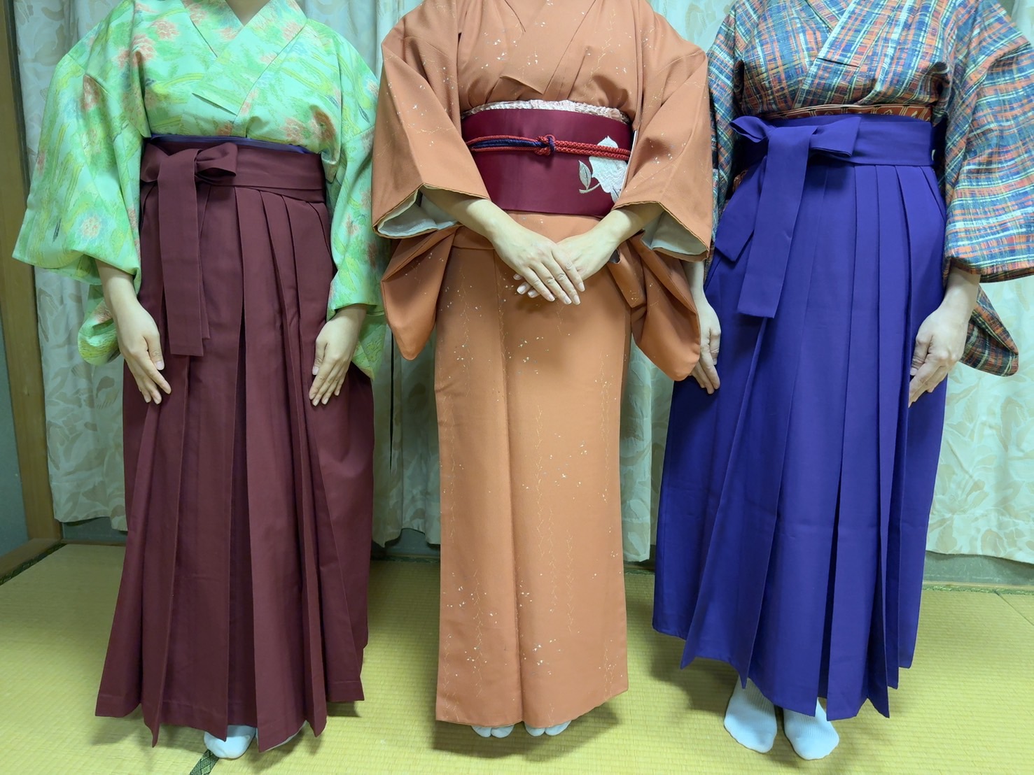 今日は袴の着付けと名古屋帯での着付けに分かれてお稽古をしました。