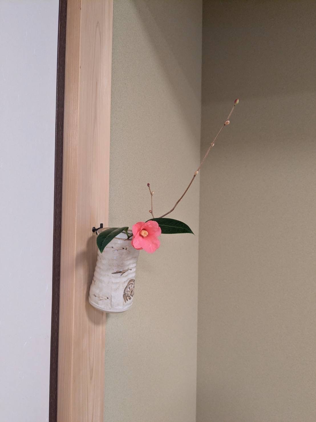 椿は本来つぼみの状態を生けるそうですが、これは小さいため、咲いてても良いそうです。
