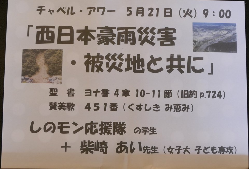 5月21日のチャペルアワーで昨年度のしのモン応援隊の活動報告を発表しました。