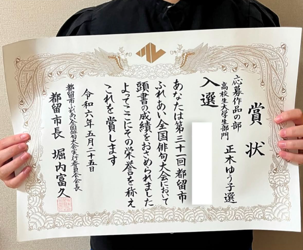 「小林一茶199回全国俳句大会」高校生・大学生部門において、佳作をいただきました!