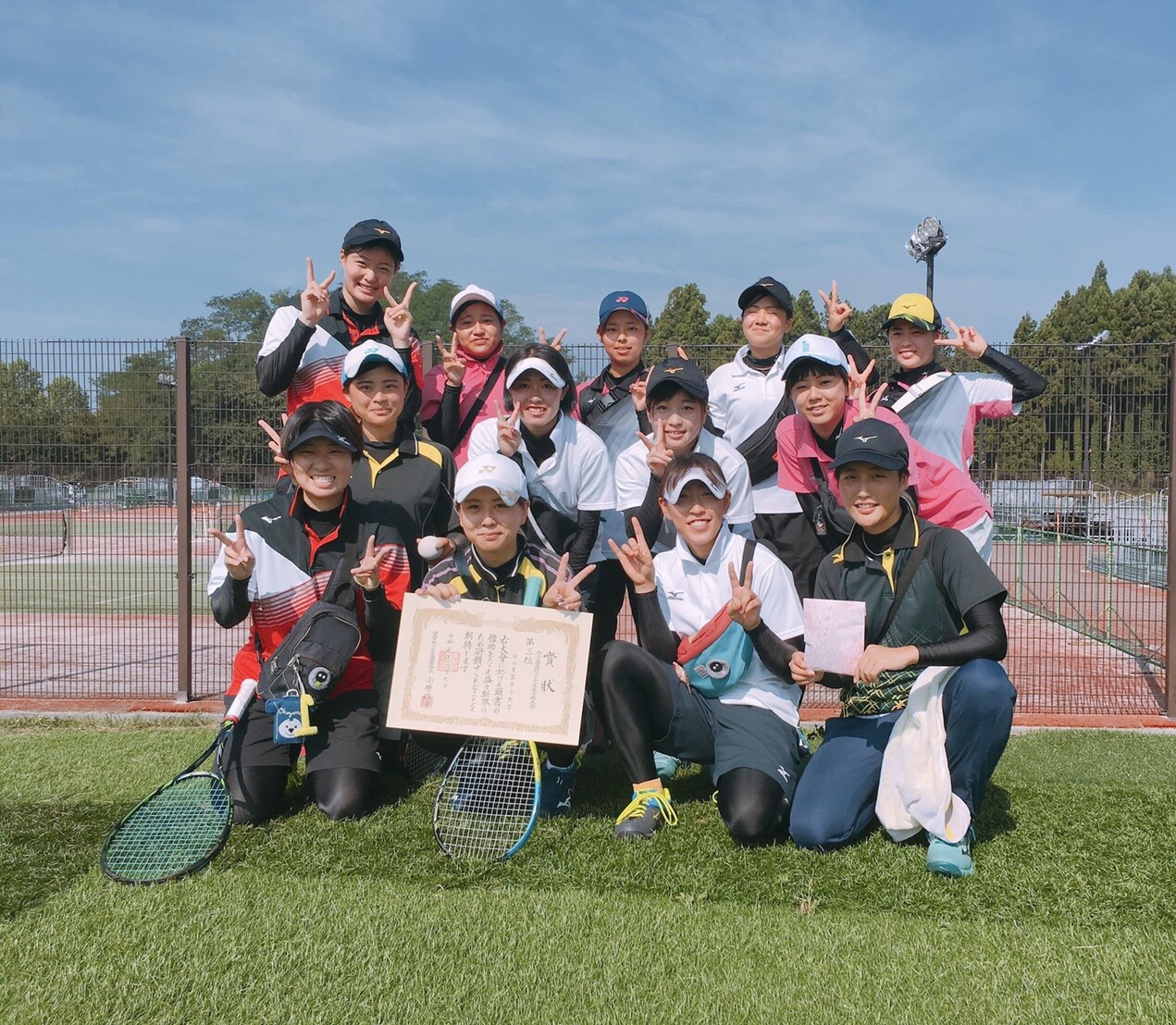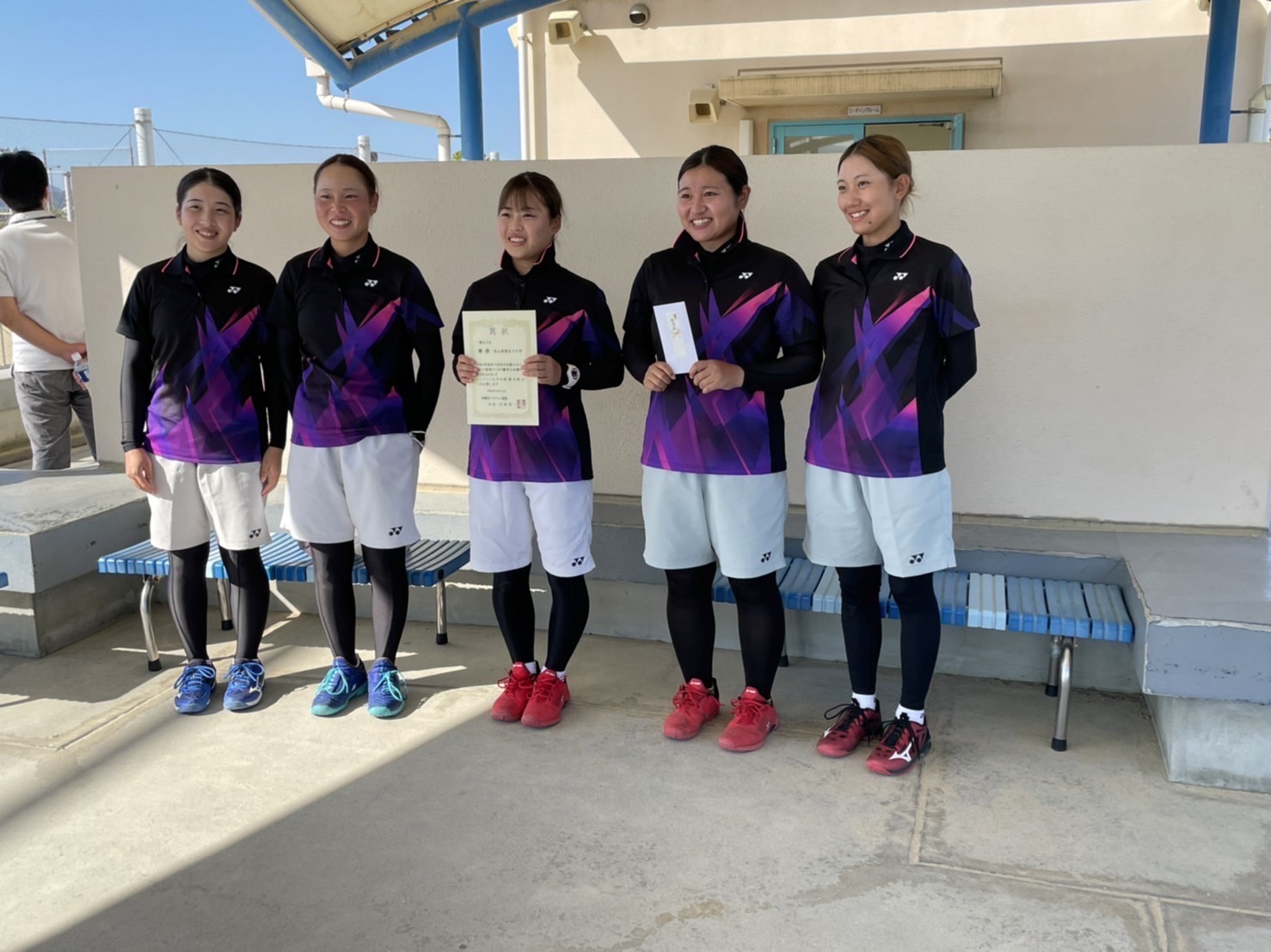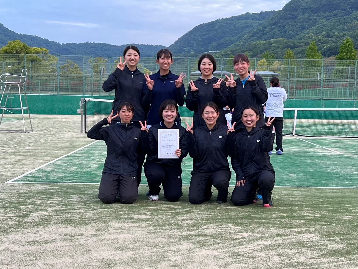 今大会で小牧・村上・松村・西原の4年生4人は引退です。3年半の間、嬉しいこと悔しいこといろんな経験をさせてもらいました。最高の仲間と東雲でテニスが出来たことは私たちの誇りです。そして、大学の関係者の方々、コーチ、監督、保護者の皆様、たくさんのサポートを本当にありがとうございました。この感謝を結果という形で返したくて、全員が一丸となって掴んだのが、6月の四国インカレ優勝でした。もっとたくさんのいい報告をしたかったので、とても悔しいです。
