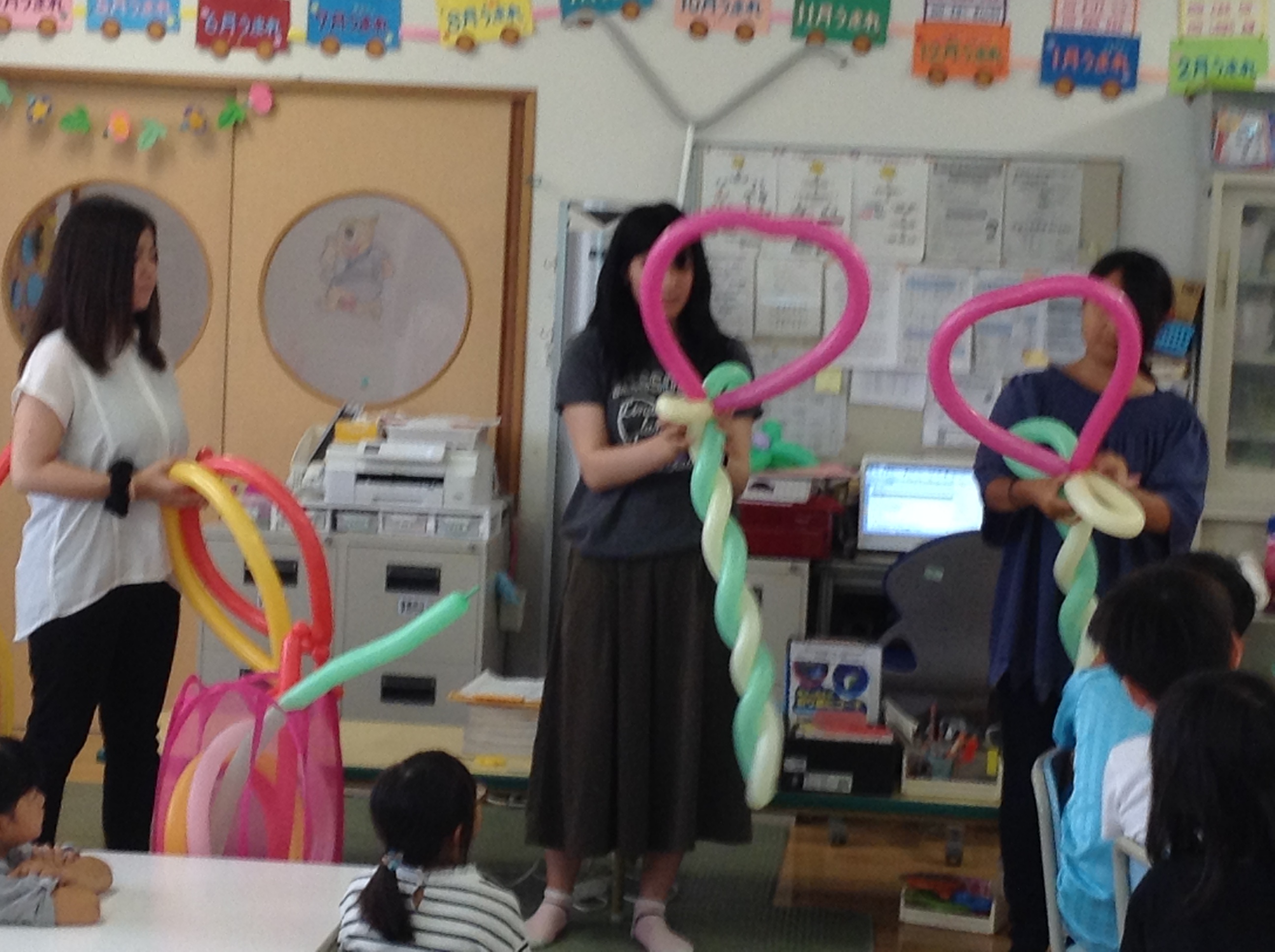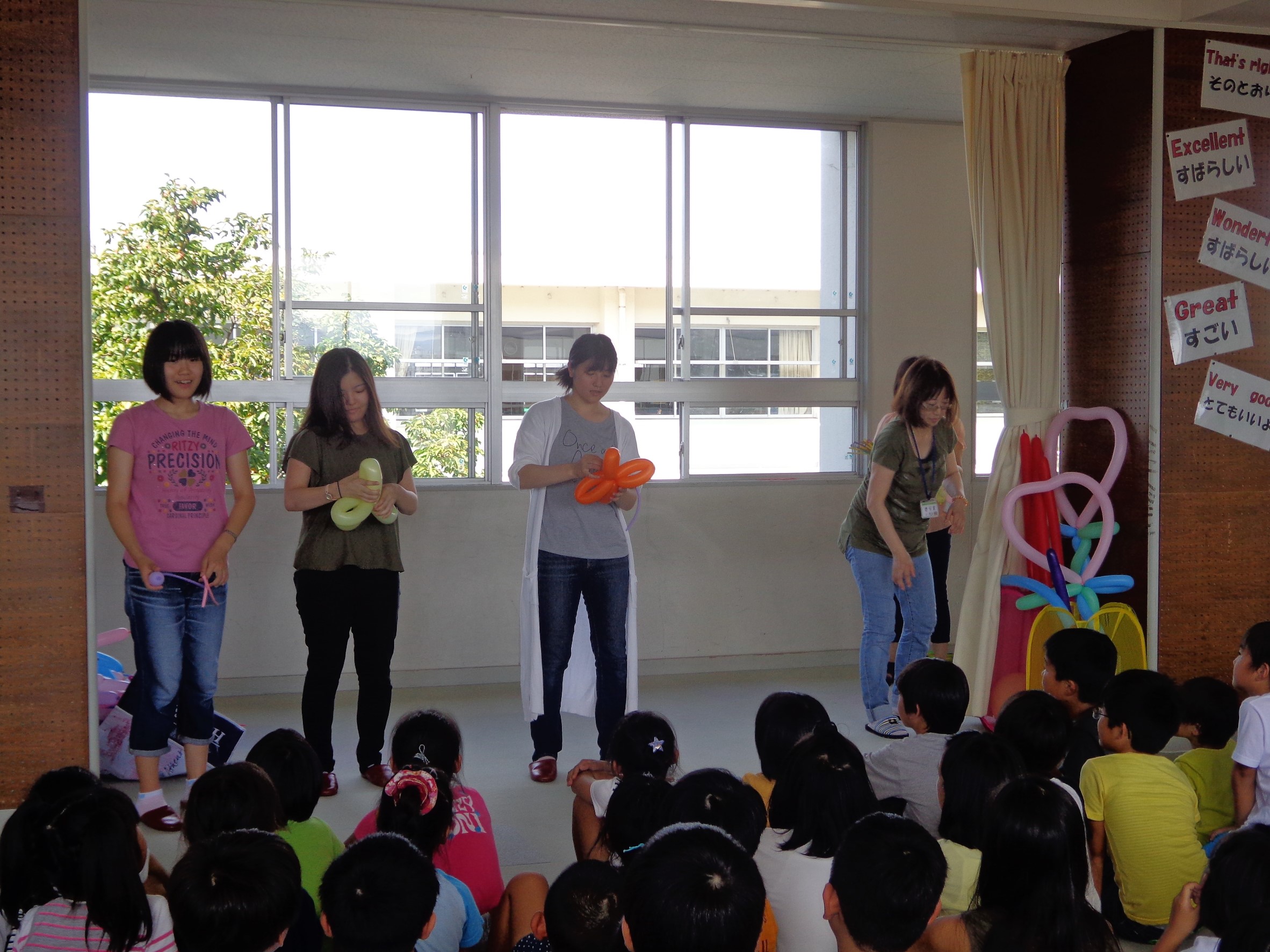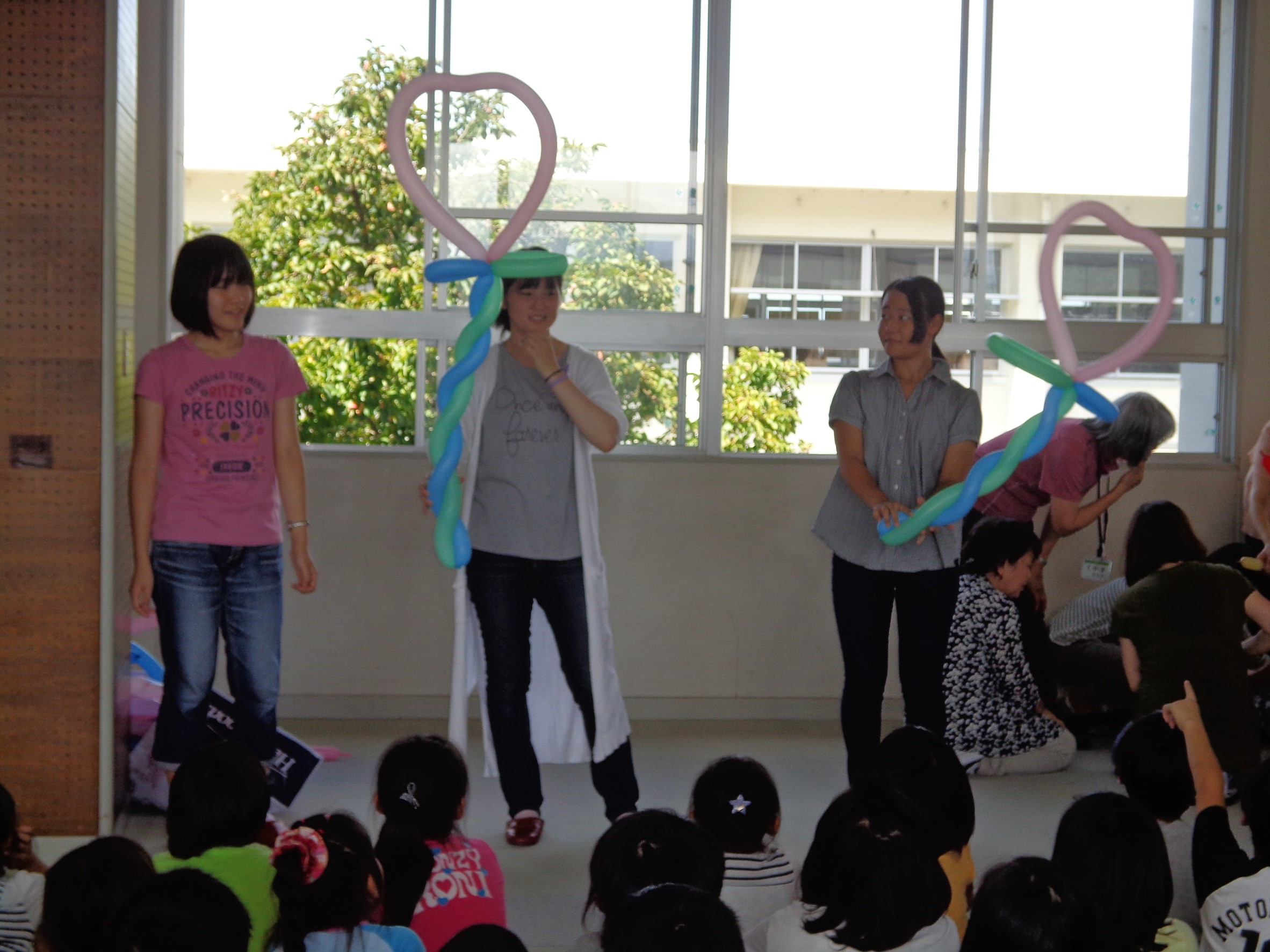 ステージに立ってのパフォーマンスでは、ハートのステッキ、飛行機、お花、ちょうちょを作りました。しかし、ステージでのパフォーマンスは、少々焦ってしまいました。日頃の練習が大切だと改めて感じました。