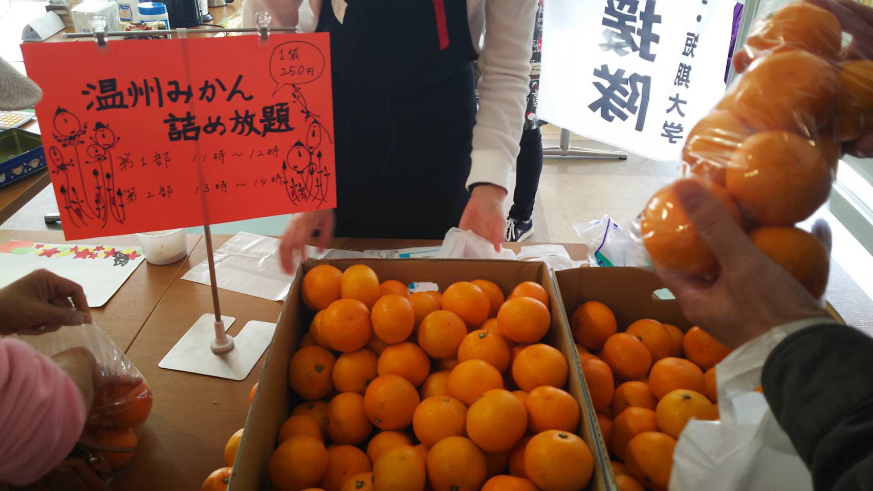 みかんの詰め放題は、たくさんの方に来ていただき、1日目に完売となりました。ありがとうございました☺️