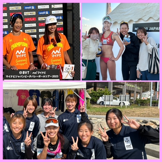 ジャパンビーチバレーツアー松山大会が北条風早長浜海岸で27〜29日まで開催されました。本学ビーチ部で活躍した村上礼華、2年連続準優勝🥈を経て悲願の優勝🏆を飾りました。松山は第二の故郷、ダイキアクシス所属で活動している礼華にとって松山開催での優勝は毎年目標にしていたので愛媛県の皆さんと喜びを分かち合いました。第8戦大阪大会に次いで2大会連続優勝となりました。
