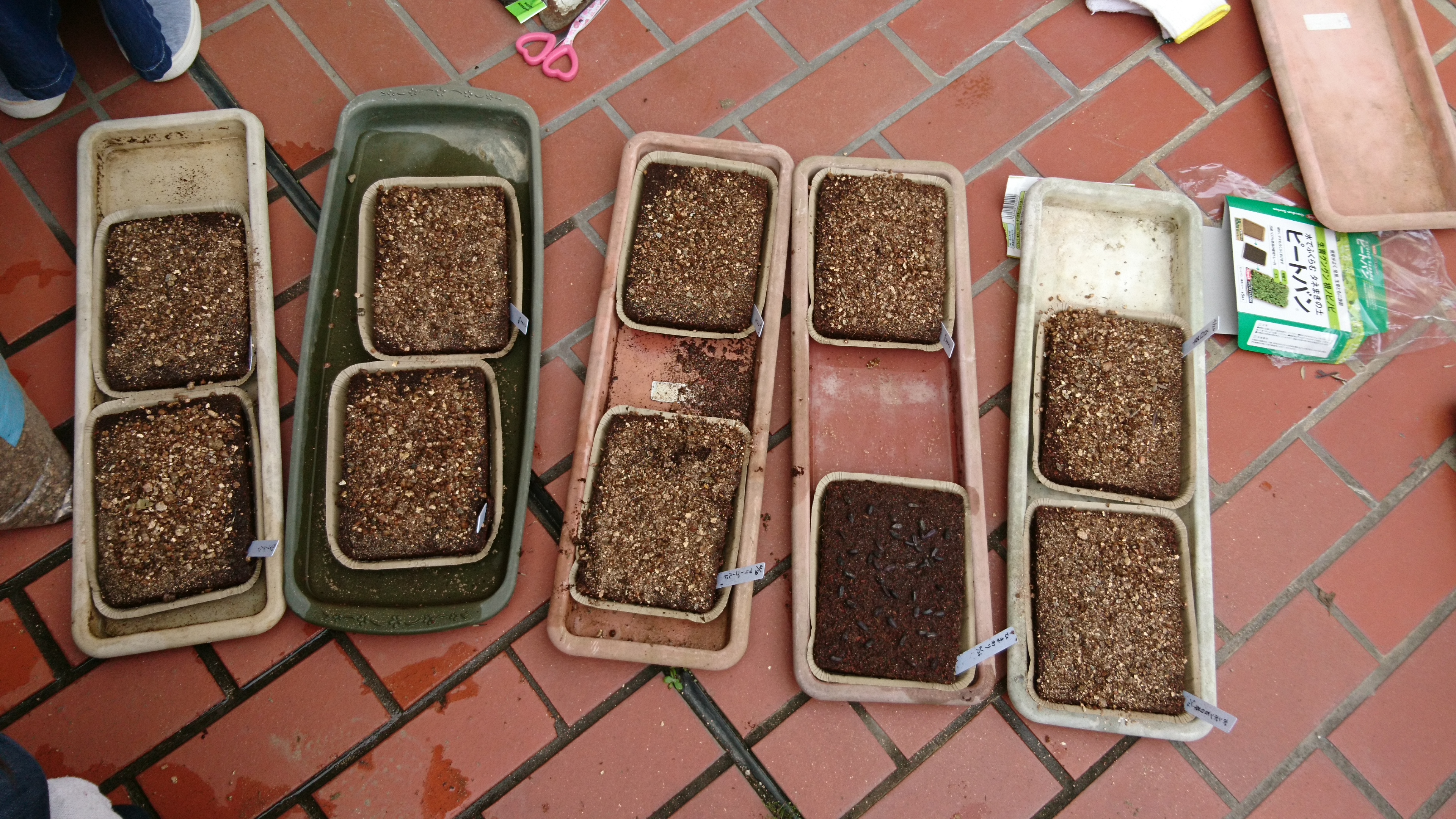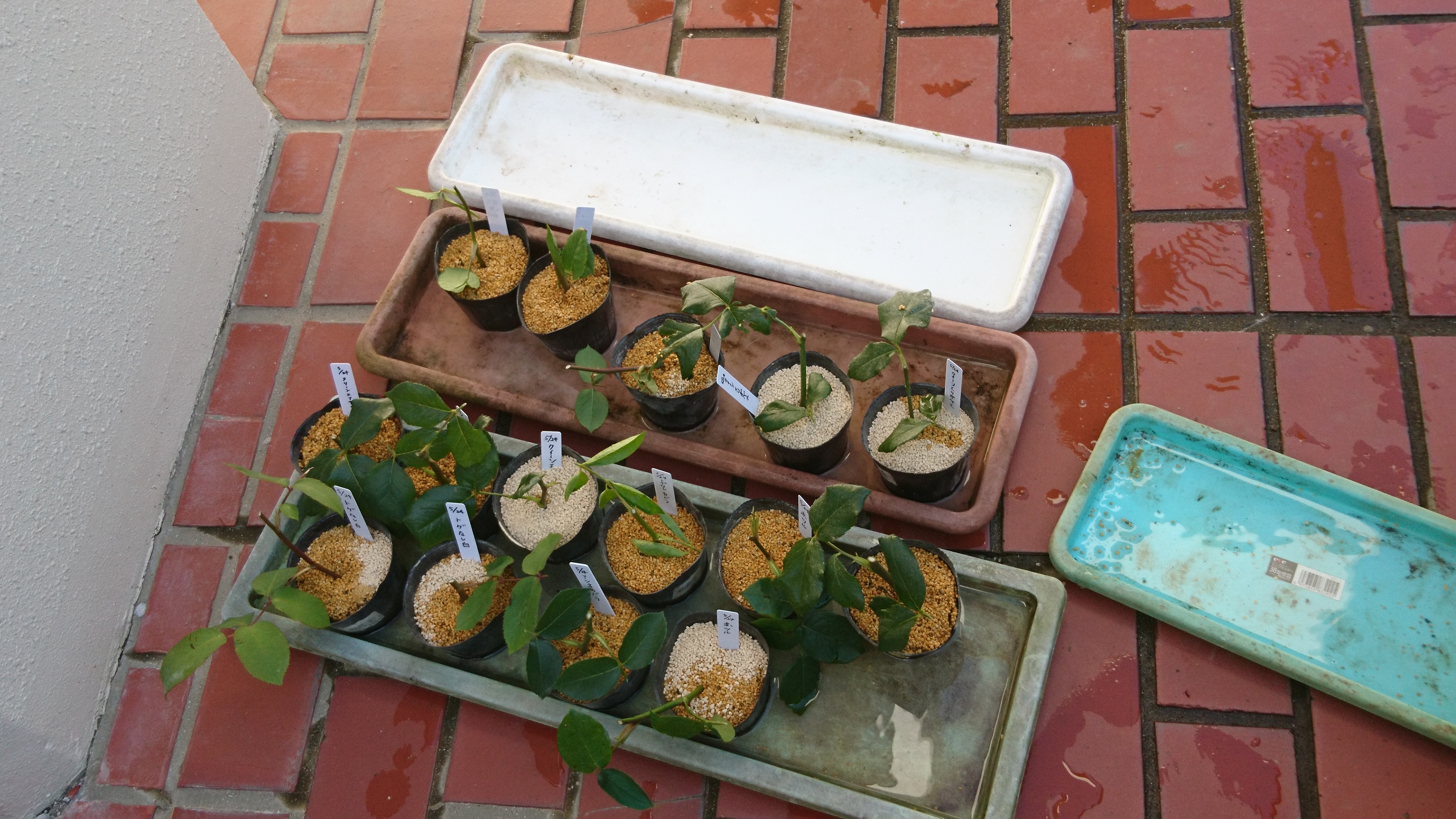 今週は中庭に置いてあるプランターの花の植え替えをしました。