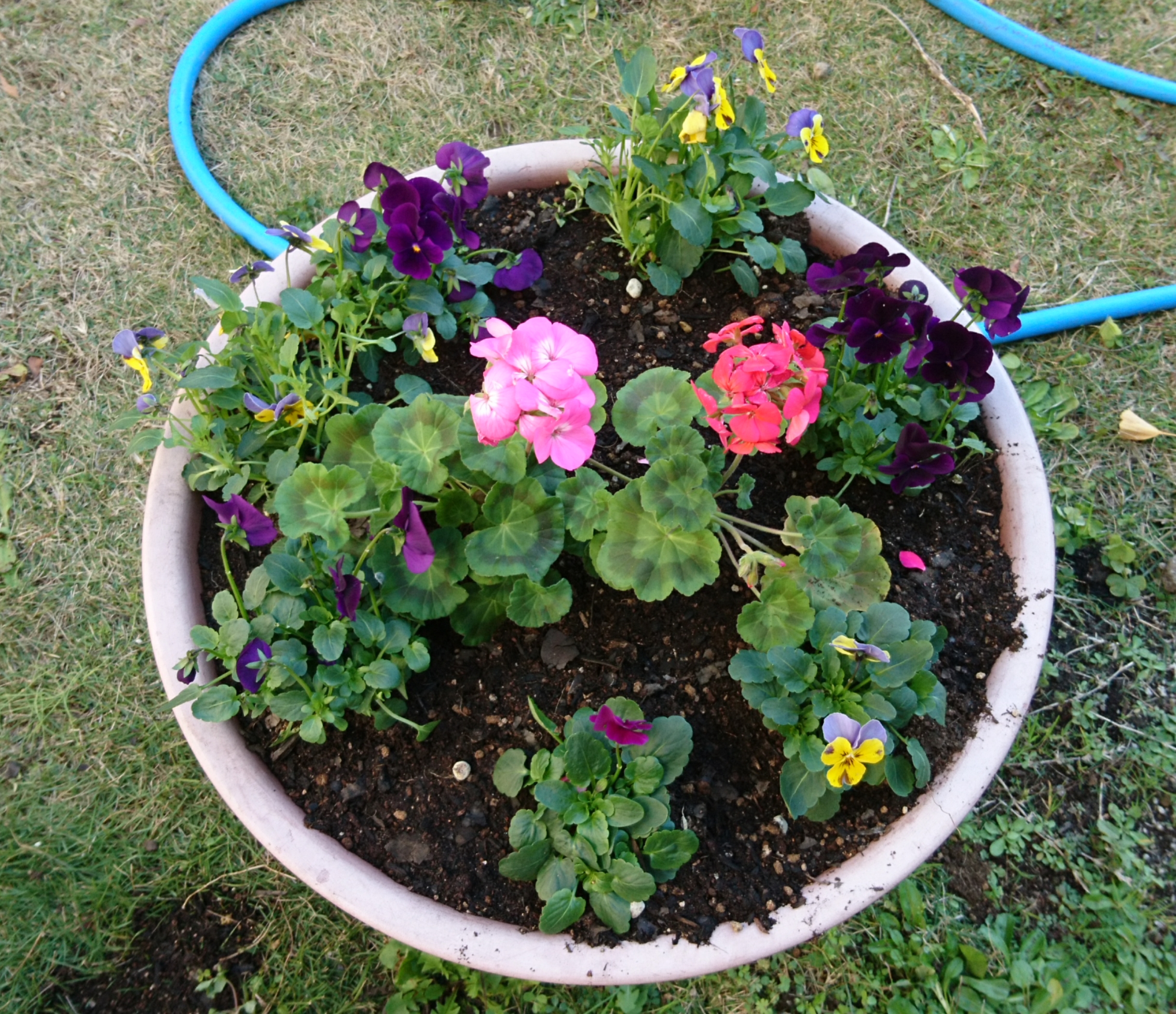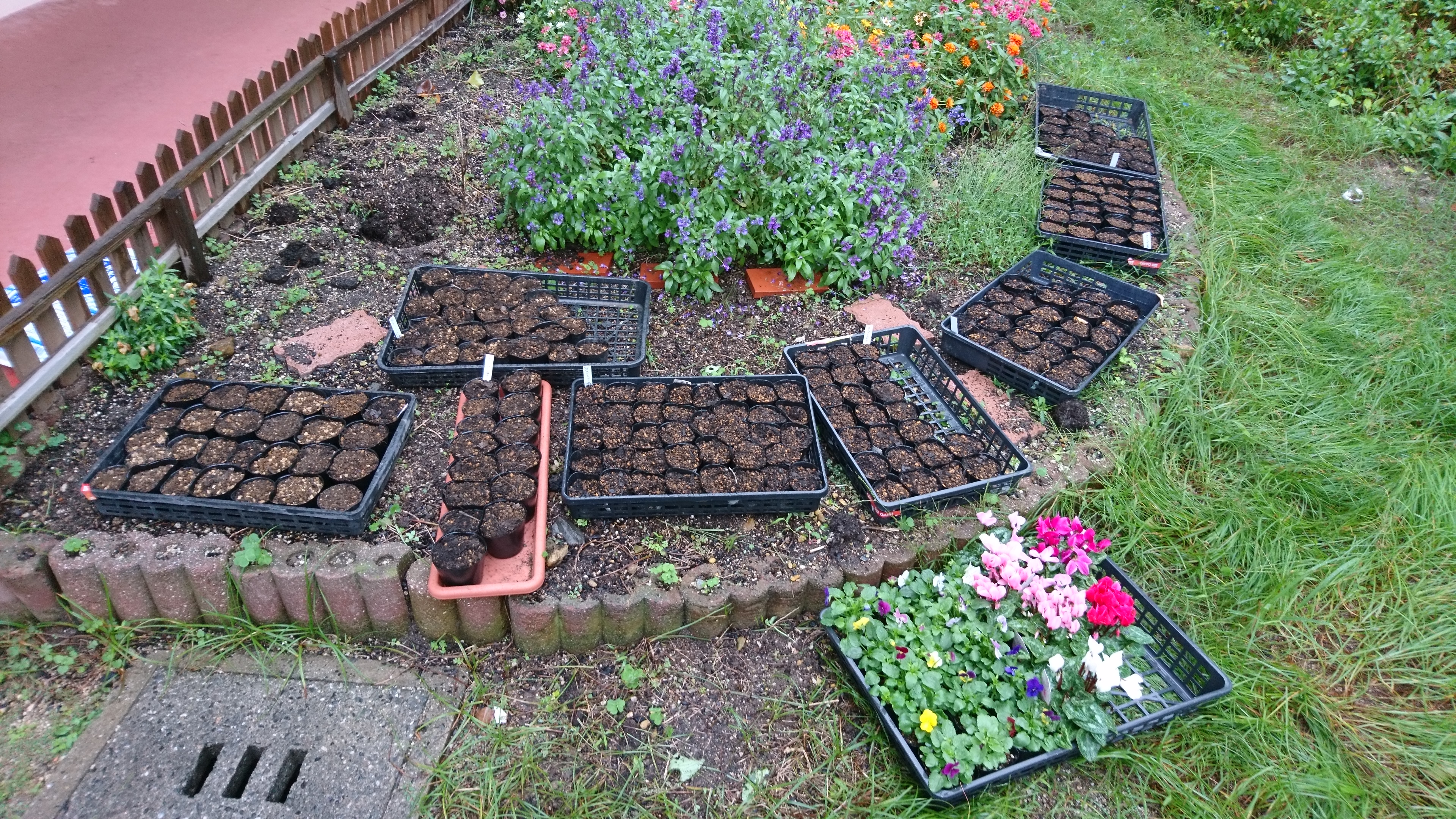 シクラメン、パンジー、ビオラなどといった様々な種類の花を植えました。