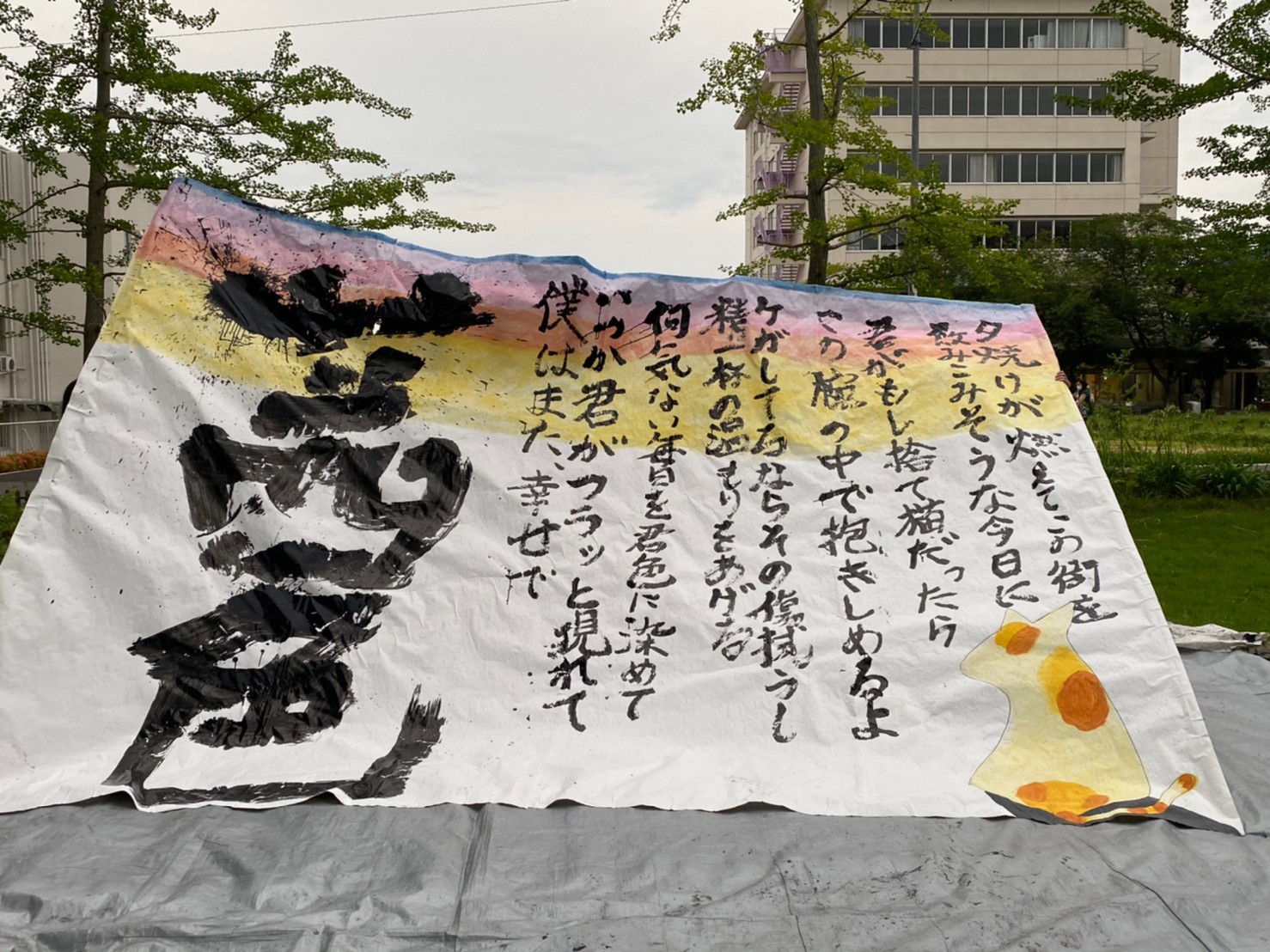 大街道でした時の作品で、黒の紙に白でかくという、とてもかっこいい作品になりました!