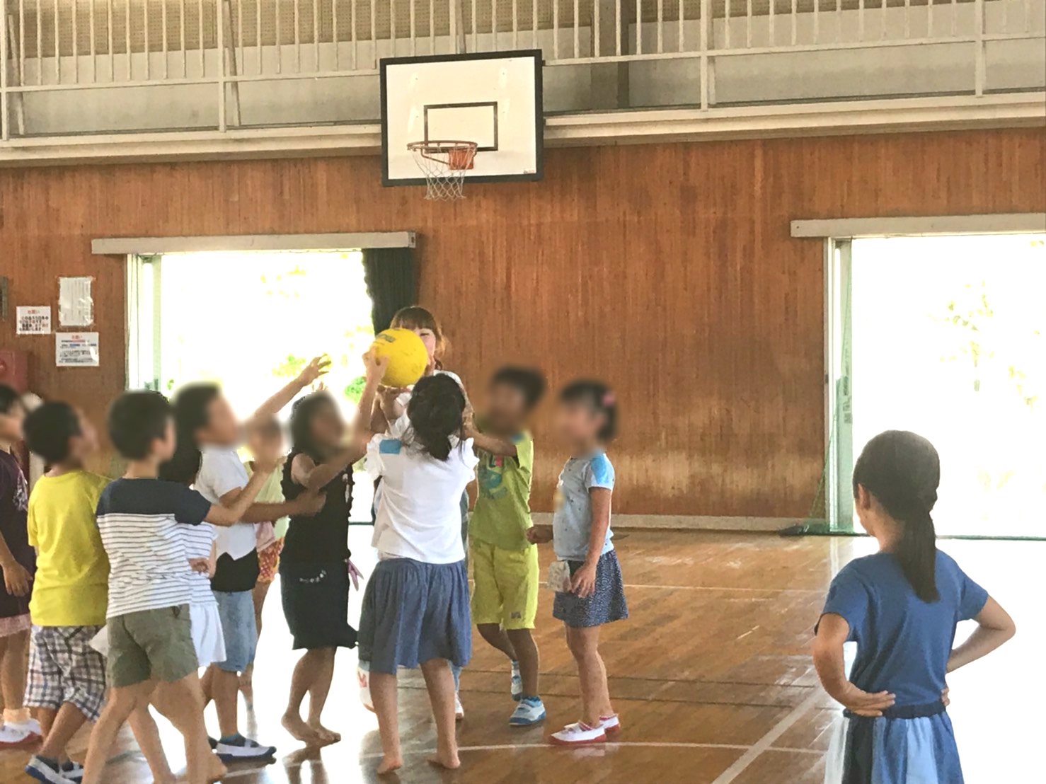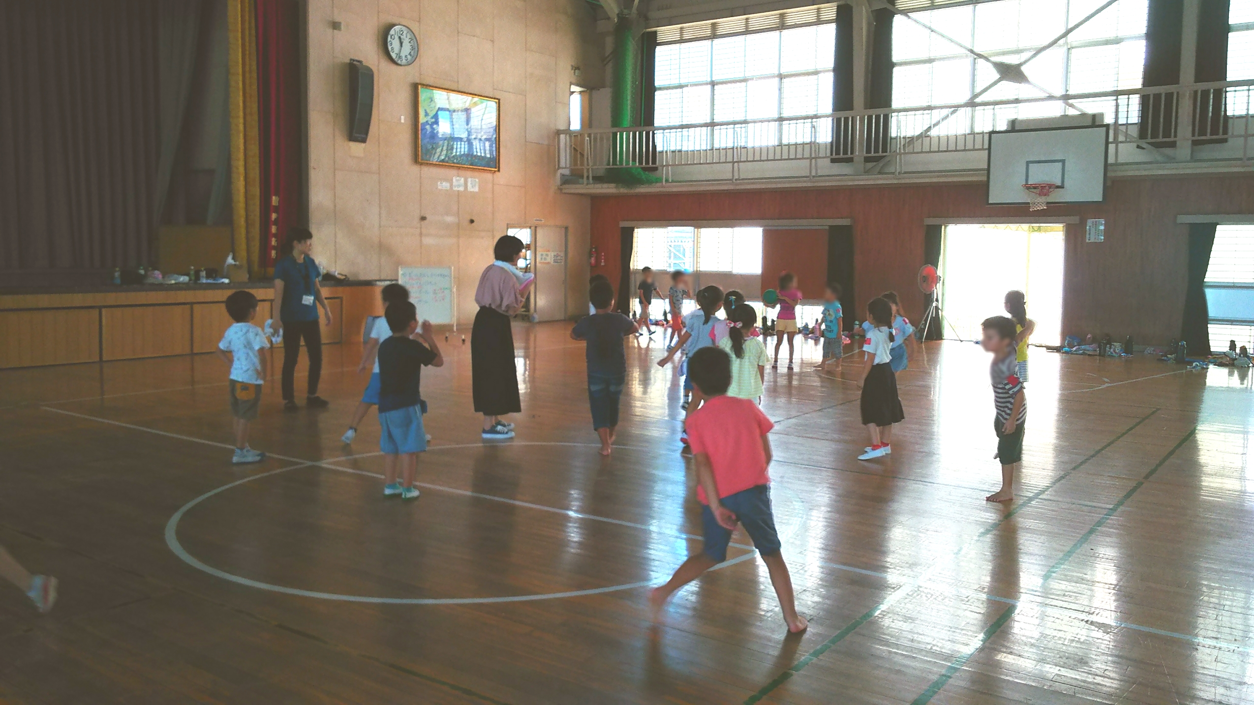 体育館の暑さの中、元気いっぱい楽しんでいました☆゚