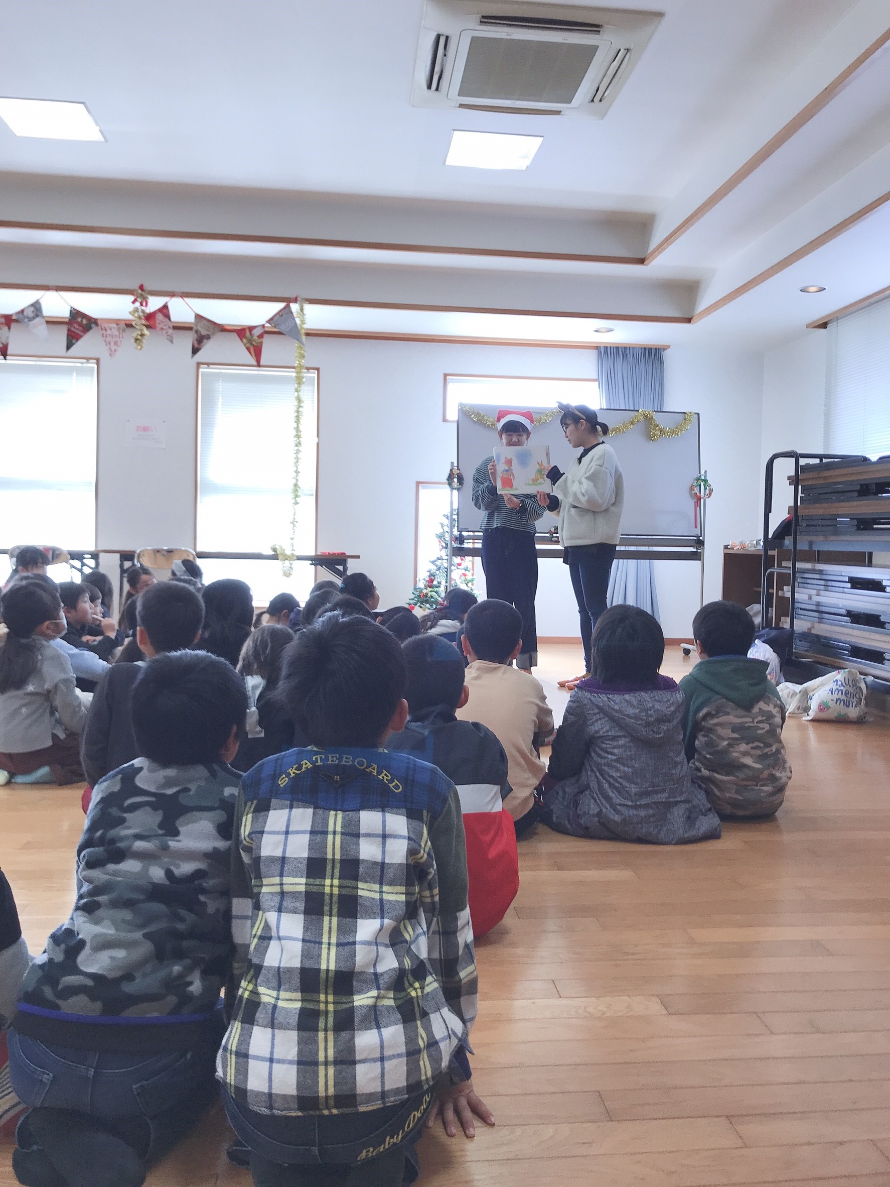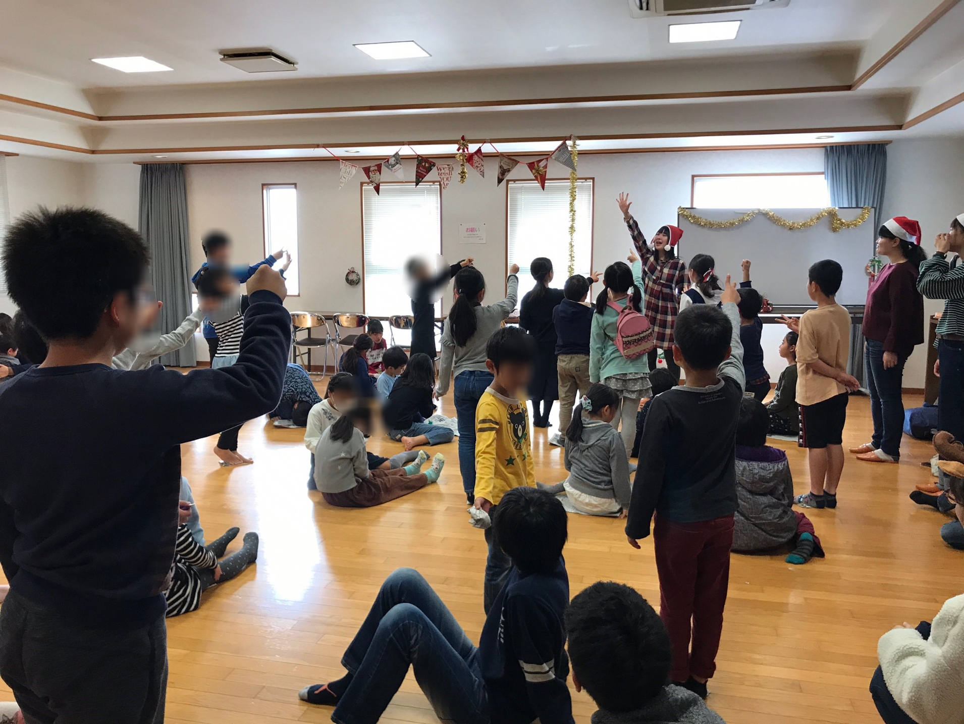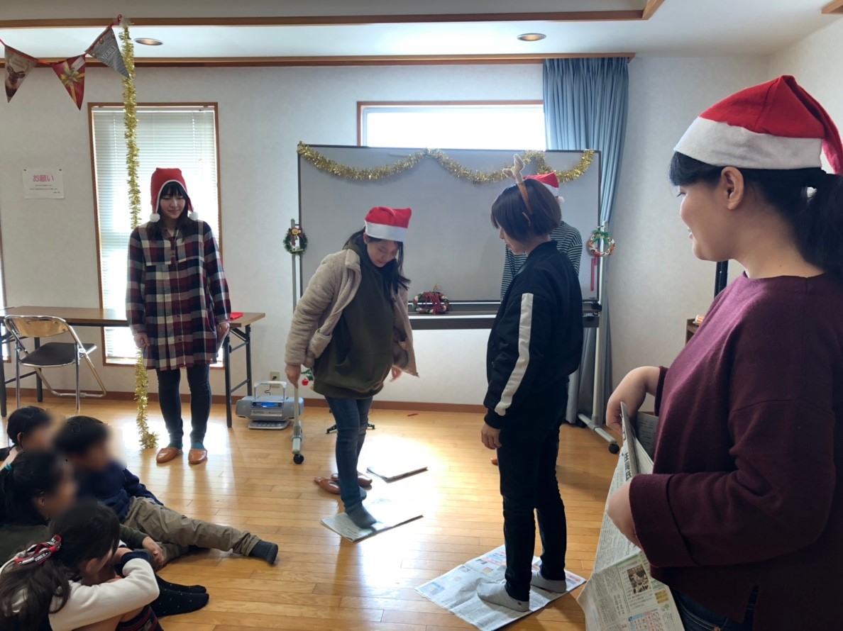 12月1日日曜日に東野下公民館で、東野下愛護班のクリスマス会を行いました!!♪80名ほどの子どもたちと、キャンドルサービス、ジャンケン列車、新聞ジャンケン、サンタクロースの福笑い、ビンゴをしました!!