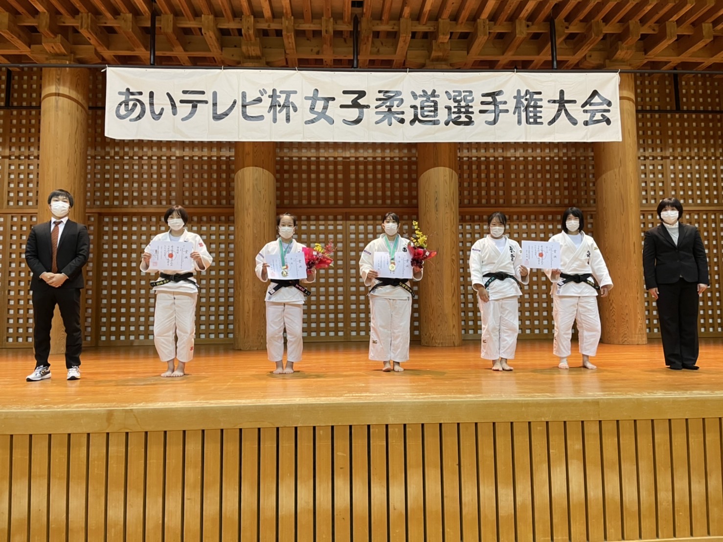 11月28日(日)に愛媛県武道館で行われたあいテレビ杯「愛媛県女子柔道体重別選手権大会」に出場しました!結果は優勝2名(52㎏級、70㎏級)準優勝1名(57kg級)3位1名(63kg級)と好成績を納めることができました!
