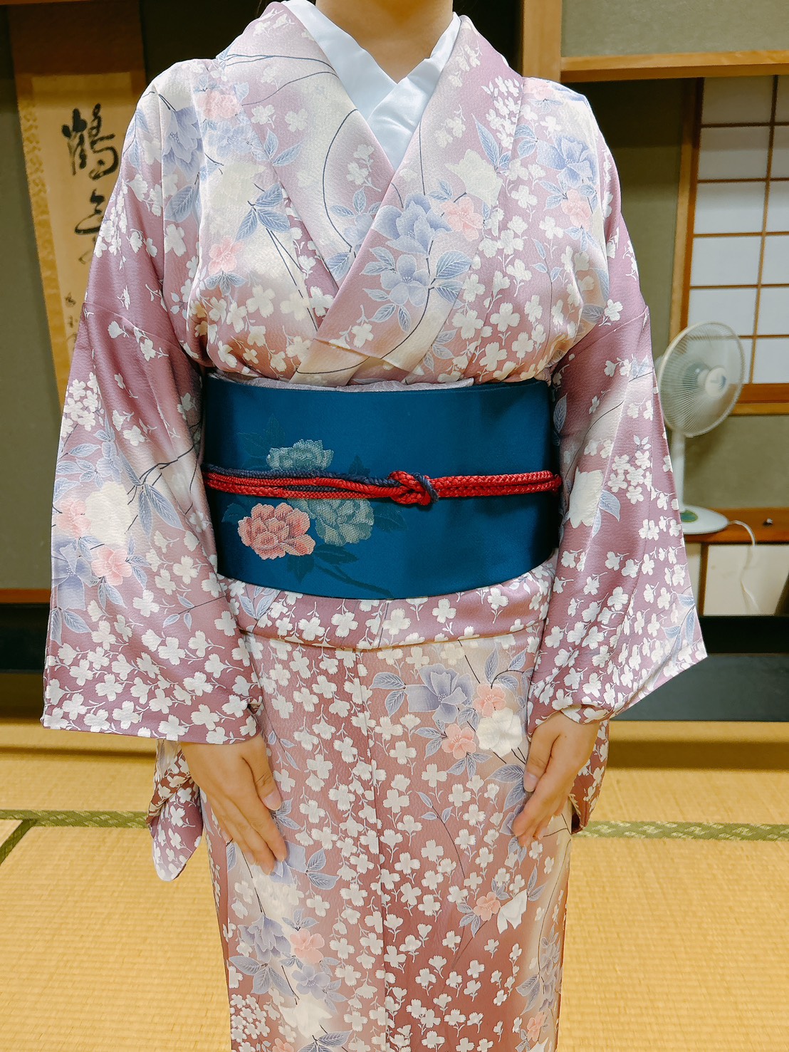> 名古屋帯の着付けは久しぶりだったので、時間がかかりましたが、先生や先輩に教えてもらいながら、綺麗に着付けをすることができました。