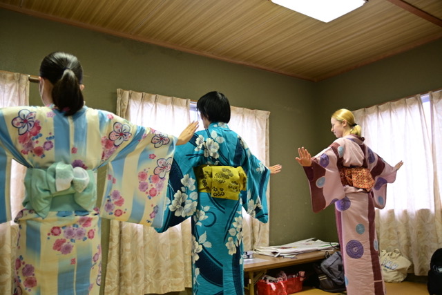 留学生のお二人には2年生が浴衣の着付けを致しました。(実は前日に法学部さんとコラボさせて頂いて着物の着付けも行っていたりしていたのですよ( ̄▽ ̄))