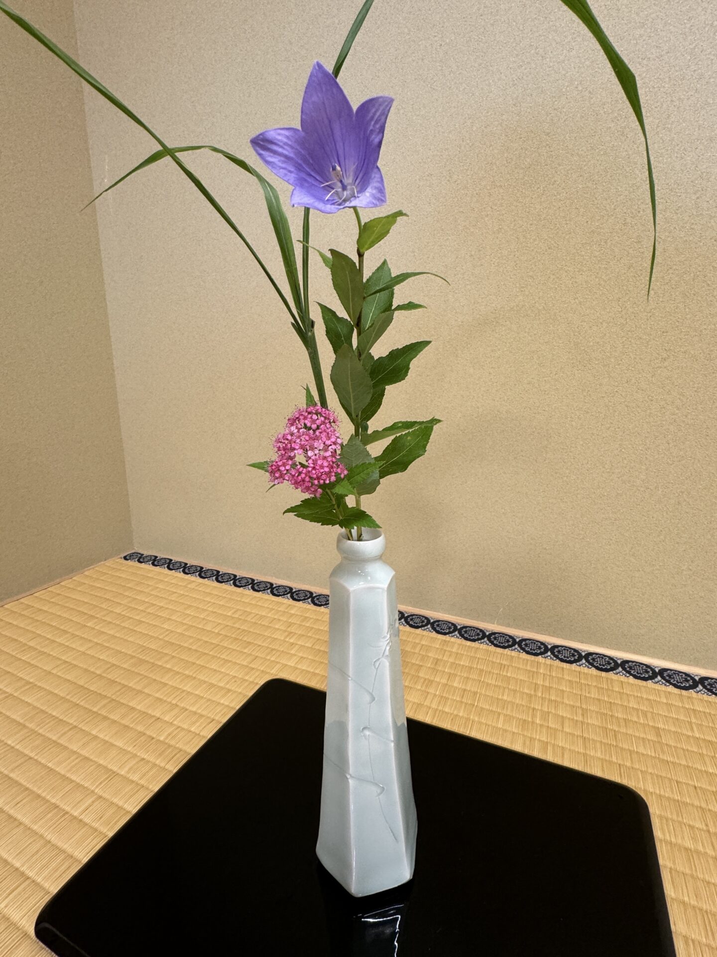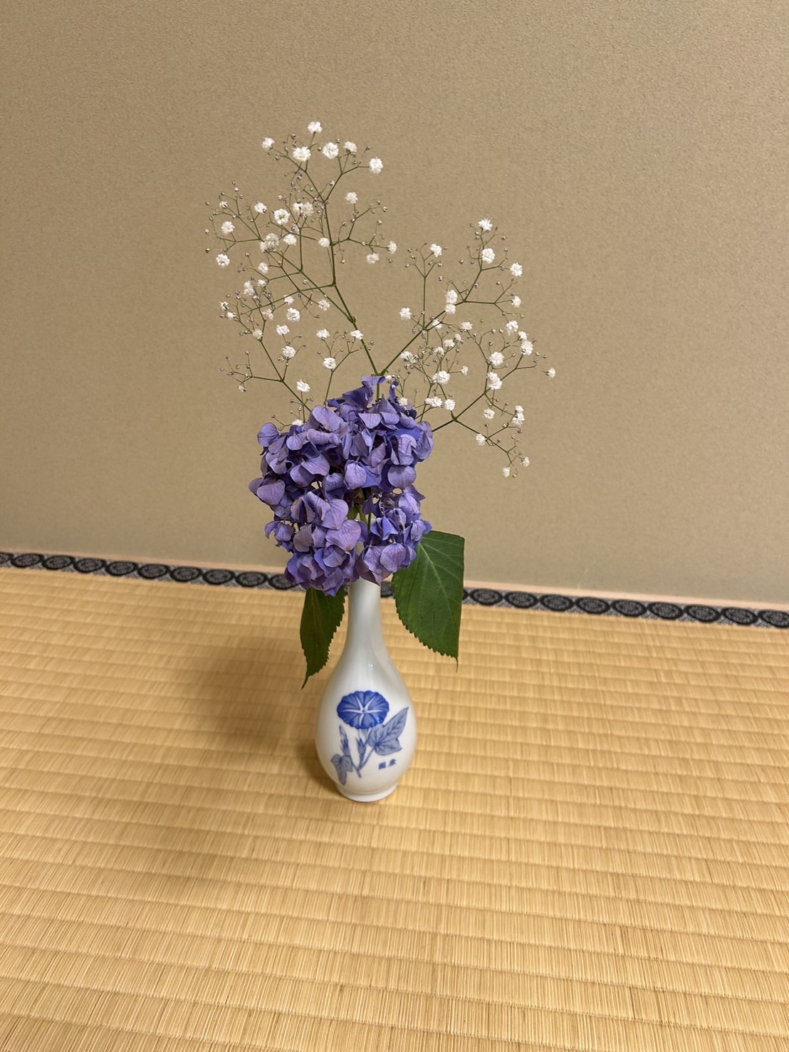 私も先輩方のようにスムーズにお点前をし、他の方にも教えられるような人になりたいです。花: 紫陽花、カスミソウ