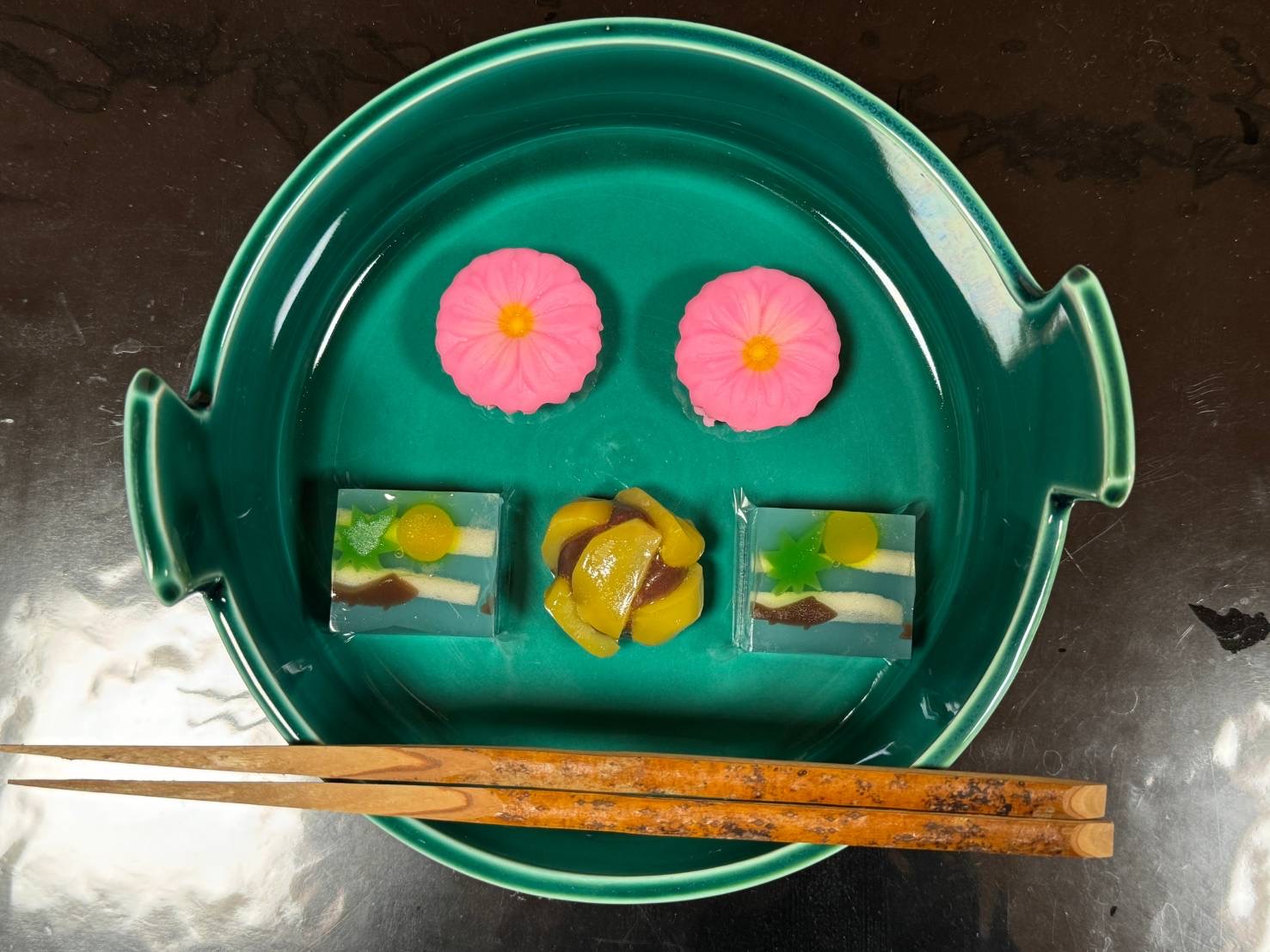 菓子 朝顔 抹茶の水羊羹 あんこの水羊羹