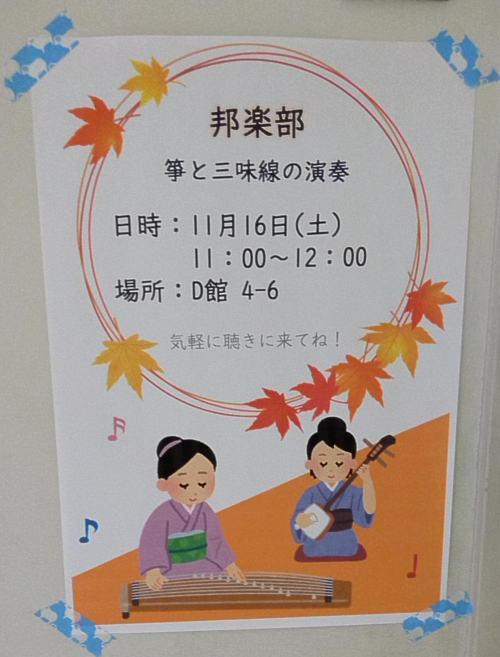 東雲祭での邦楽部演奏会は、